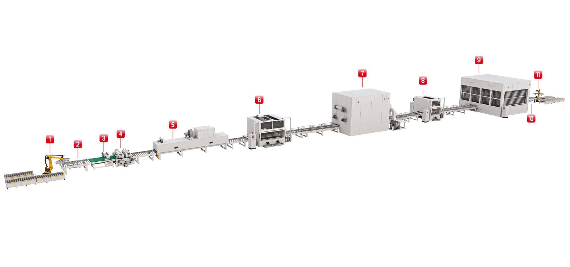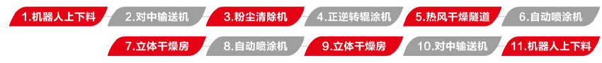 預輥實色水性乳膠漆,再噴第一次質感涂料,待干后再噴第二次水包水涂料,形成自然立體的火燒石面效果,是外墻最受熱選的一種效果。后段配平鋪式立體干燥房,避免了厚噴漆膜流掛的現象,同時實現油漆快速干燥,將能耗降至最優。