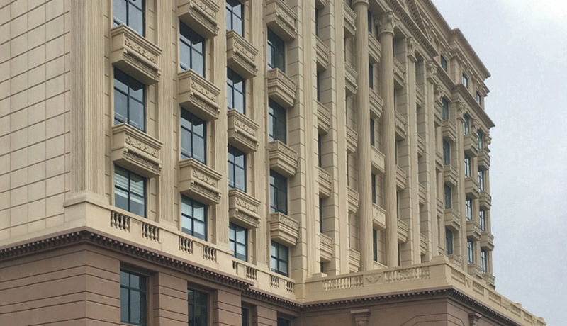 以中高密度纖維水性板/硅酸鈣板為基材,通過多層耐候性的UV漆、氟碳漆、水包水多彩漆、真石漆等外墻專用裝飾涂料,做出別具風格、樣式清晰的各種飾面, 如花崗巖、金屬板、大理石、瓷磚等效果。再復合于真金板、巖棉板、發(fā)泡玻璃等保溫材料,形成工廠化生產的新型建筑結構裝飾保溫材料。該產品具有輕質高強度、抗風壓、耐凍融、抗沖擊、防火、防潮的特性,是替代自然石材、陶瓷和金屬板優(yōu)良材料。