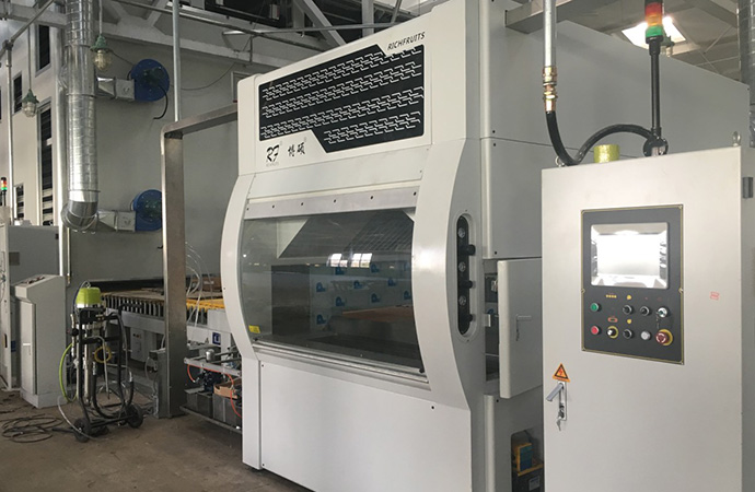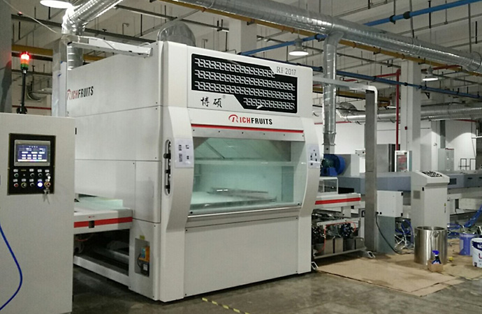 工藝要求 無溶劑UV底漆、水性面漆 產品種類 全屋定制、櫥柜、木門、線條 產線數量 2條 設備特色 面容積清洗皮帶系統,年節約清洗劑30萬。 生產產能 UV底漆噴涂線:1800m2/8h (生產員3人/線)