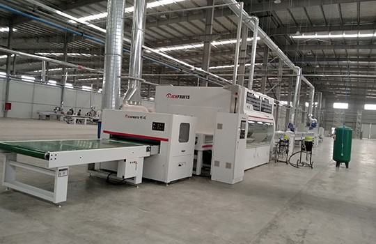 工藝要求 UV底漆、水性面漆 產(chǎn)品種類 實木復合門、門套、門板 產(chǎn)線數(shù)量 6條 設(shè)備特色 自動噴漆、砂光、噴色、修色和面漆,不下線連續(xù)生產(chǎn)。 生產(chǎn)產(chǎn)能 800套門板/天 廢氣處理 干式過漉+催化燃燒處理系統(tǒng) -