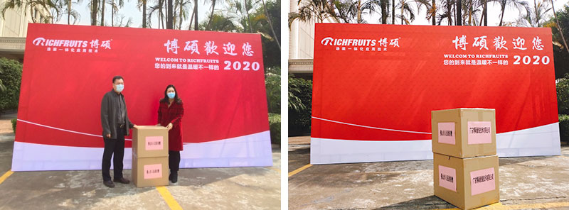 針對此次疫情所需要防疫物資,工作組一行還為博碩帶來了兩箱口罩,讓我們感受到了暖暖的春意。