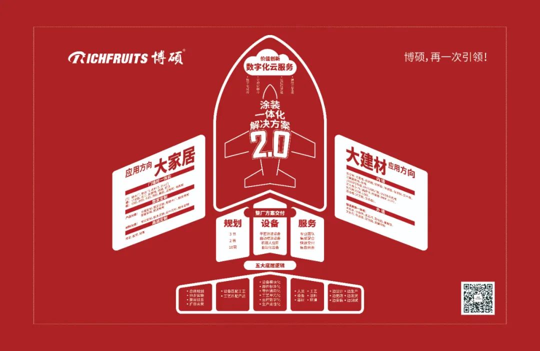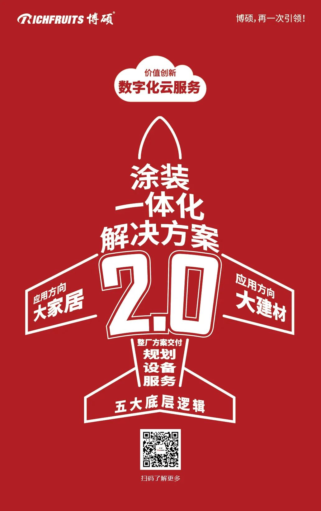 博碩涂裝一體化解決方案2.0主題畫(huà)面的中心便是數(shù)字“2.0”,預(yù)示著這是一個(gè)