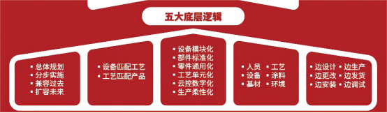 五大底層邏輯,包括 “總體規(guī)劃、分步實(shí)施、兼容過(guò)去、擴(kuò)容未來(lái)”“設(shè)備匹配工藝,工藝匹配產(chǎn)品”等。特別是其中的信息化系統(tǒng)“六邊”,是整廠方案準(zhǔn)時(shí)交付的重要保證。