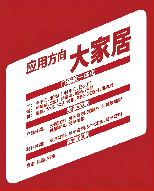 大家居”領(lǐng)域的應(yīng)用:門(mén)墻柜一體化、整家定制、高端定制;還實(shí)現(xiàn)了在“