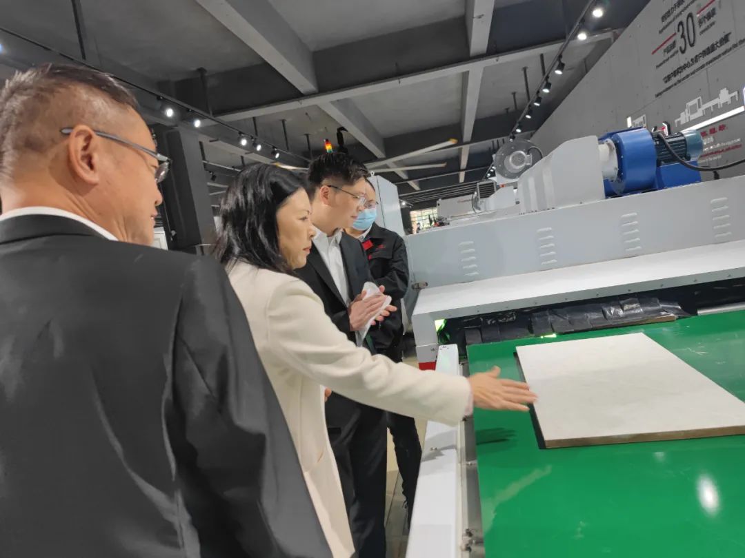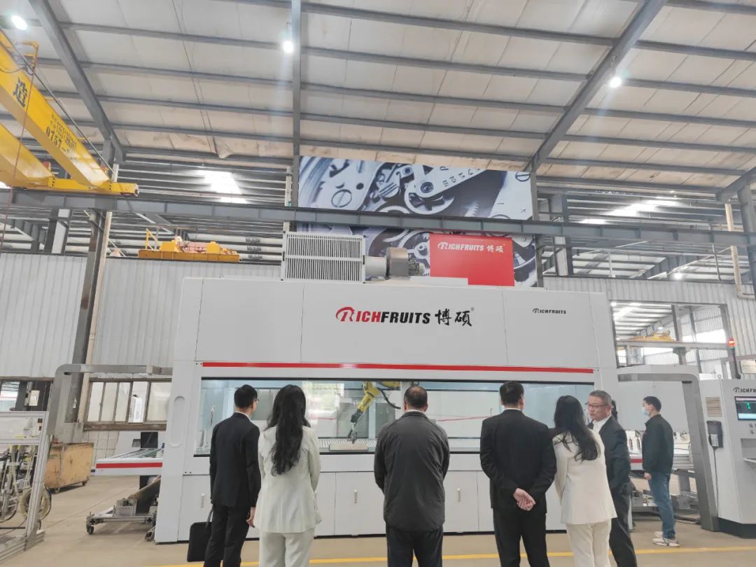再一同體驗了“涂裝智能生產線”準分子膚感板的生產過程,從進料到出成品,感受到準分子膚感板如嬰兒般皮膚細膩的觸感。通過現場感受涂裝設備在效率、智能、環保、節能方面的先進性,劉書記對博碩在技術研發的投入及設備的智能、環保、節能方面的顯著成效給予了充分的肯定和高度的贊揚,對博碩未來及長遠發展非常看好,同時也做出了相關的工作指示。