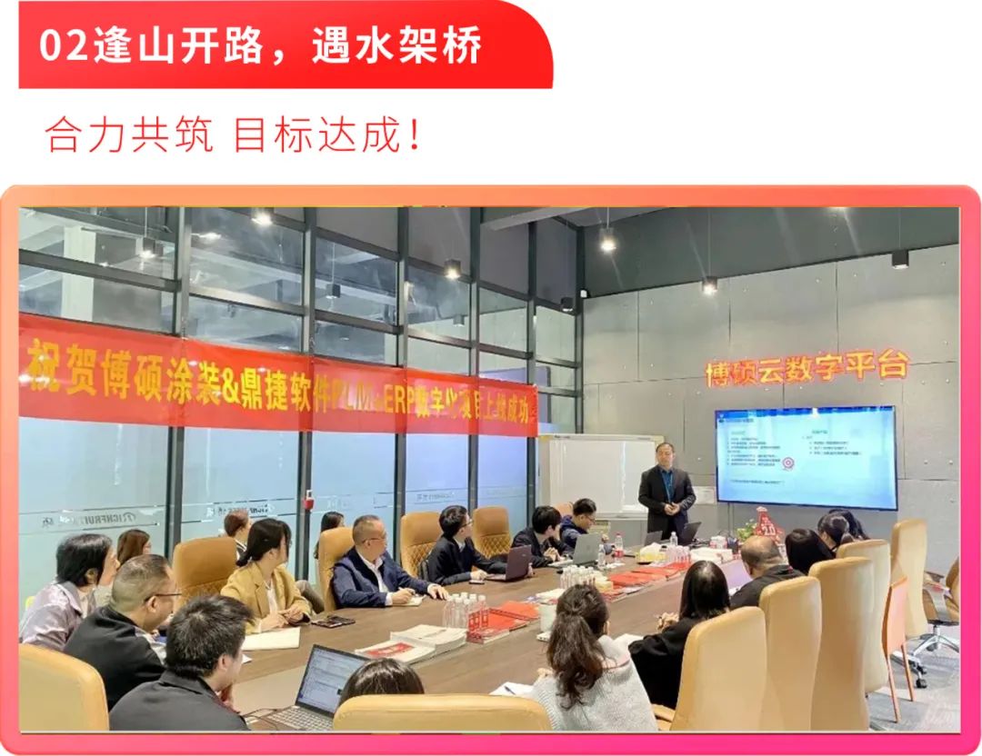 目前好消息已經傳來,歷經7個月的調研梳理及上線部署,合作雙方的辛苦付出獲得了階段性成果,博碩涂裝信息化項目迎來里程碑式意義的時刻!近期上線大會在雙方的高度重視下成功舉辦。廣東博碩涂裝技術有限公司董事長謝君、信息部經理馮聲醒,鼎捷軟件項目經理畢子龍等雙方團隊出席會議。會議的召開標志著經過全體項目組成員的一致努力下,正式將“啟動”變為“上線”。