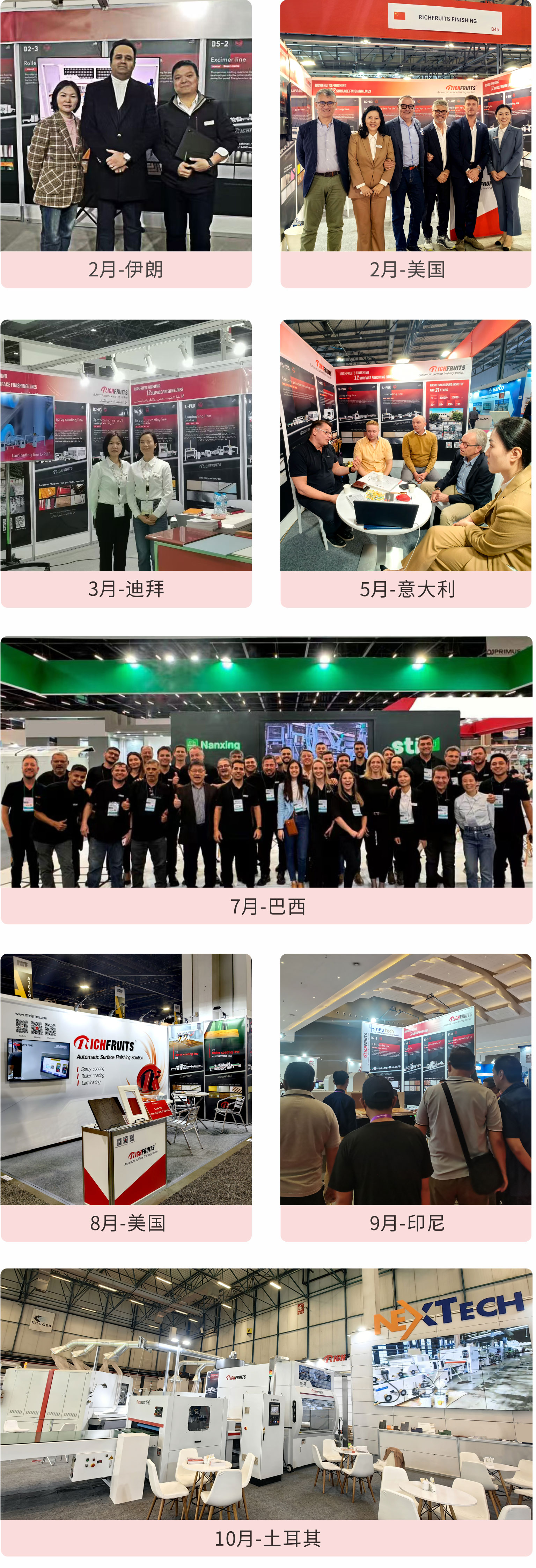 In 2024, Richfruits' participated in exhibitions around the world many times, in the United States, in Dubai, in Italy, in Brazil, and so on. This also marks the successful appearance of Richfruits' equipment on the international stage time and again. Taking this opportunity, Richfruits has deeply understood the customer needs in overseas markets. In the future, Richfruits will continue to adhere to product quality and use professional knowledge and high-quality services to provide integrated coating solutions for customers at home and abroad.