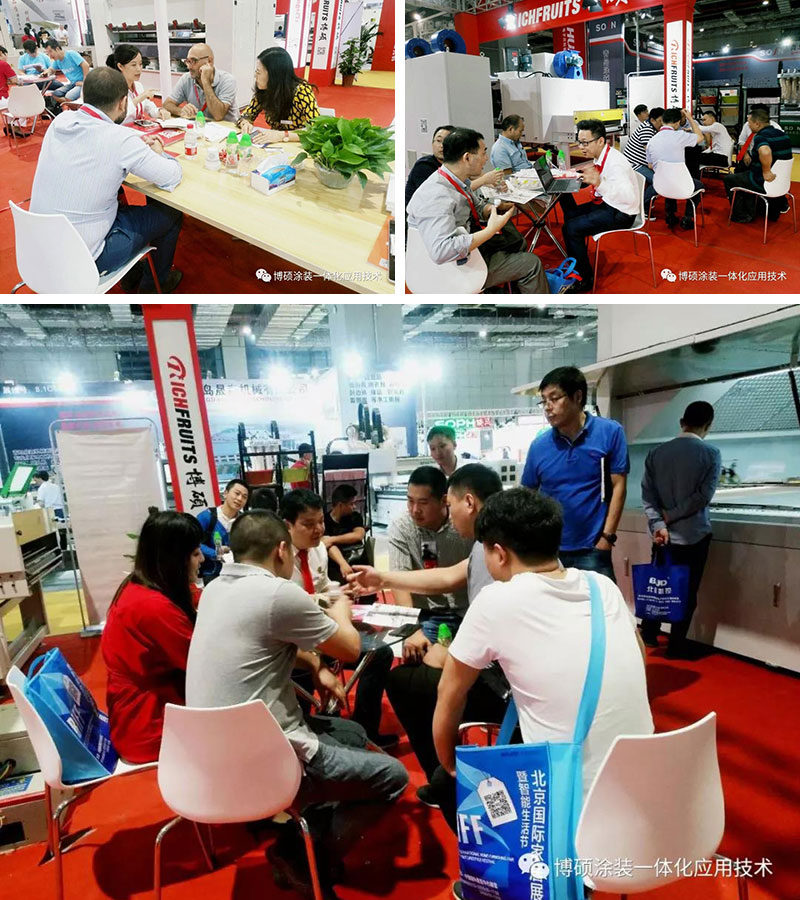 本次展會博碩攜涂裝剛需:B2-03亮相展位,它具有高效、節能、環保的特點,采用UV底+水性面或UV底+UV面的自動化噴涂工藝,達到環保的效果;一條線的管理只需3人,代替16名操作工人;油漆回收利用率達80%—85%,是傳統手工噴涂的兩倍;適用于櫥柜、木門、實木、整木等家居領域,日均產能高達1800平方米。