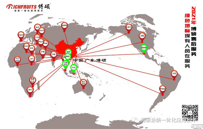 博碩公司積極響應(yīng)政府“一帶一路”的政策,憑借在涂裝設(shè)備產(chǎn)業(yè)的持續(xù)技術(shù)創(chuàng)新、高品質(zhì)的入式技術(shù)服務(wù)能力,素以性能穩(wěn)定、高性價(jià)比、綜合應(yīng)用強(qiáng)在行業(yè)內(nèi)著稱(chēng),產(chǎn)品服務(wù)于國(guó)內(nèi)31個(gè)省、市、自治區(qū);遠(yuǎn)銷(xiāo)俄羅斯、烏克蘭、伊朗、美國(guó)、印度、波蘭、阿曼、羅馬尼亞、土耳其、阿爾巴里亞、墨西哥、尼日尼亞、伊拉克、迪拜、巴西、越南、印度尼西亞、馬來(lái)西亞、斯里蘭卡等全球50多個(gè)國(guó)家。