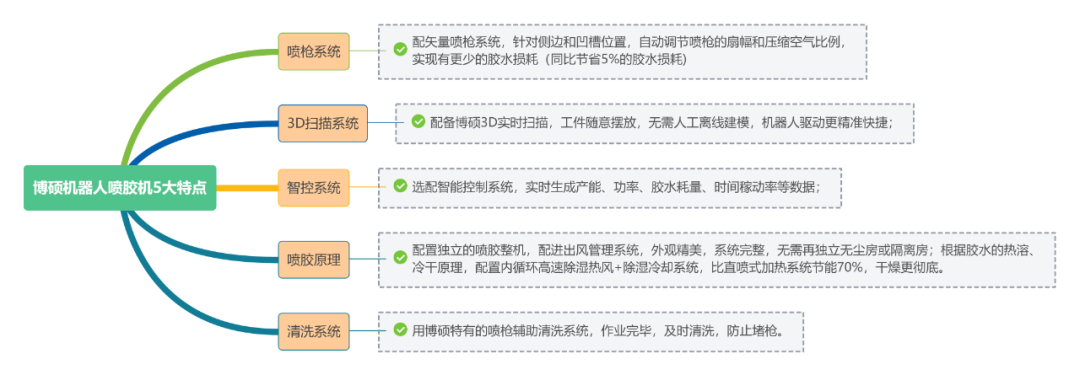 博碩機器人噴膠系統的應用,助力家居類企業智能制造升級迭代;機器人噴膠,具有高效率、噴膠精度高、膠水能耗低,生產數據后臺可視化,智控系統操作簡單易上手等特點,是家具類企業采用機器人噴膠作業的不二選擇。