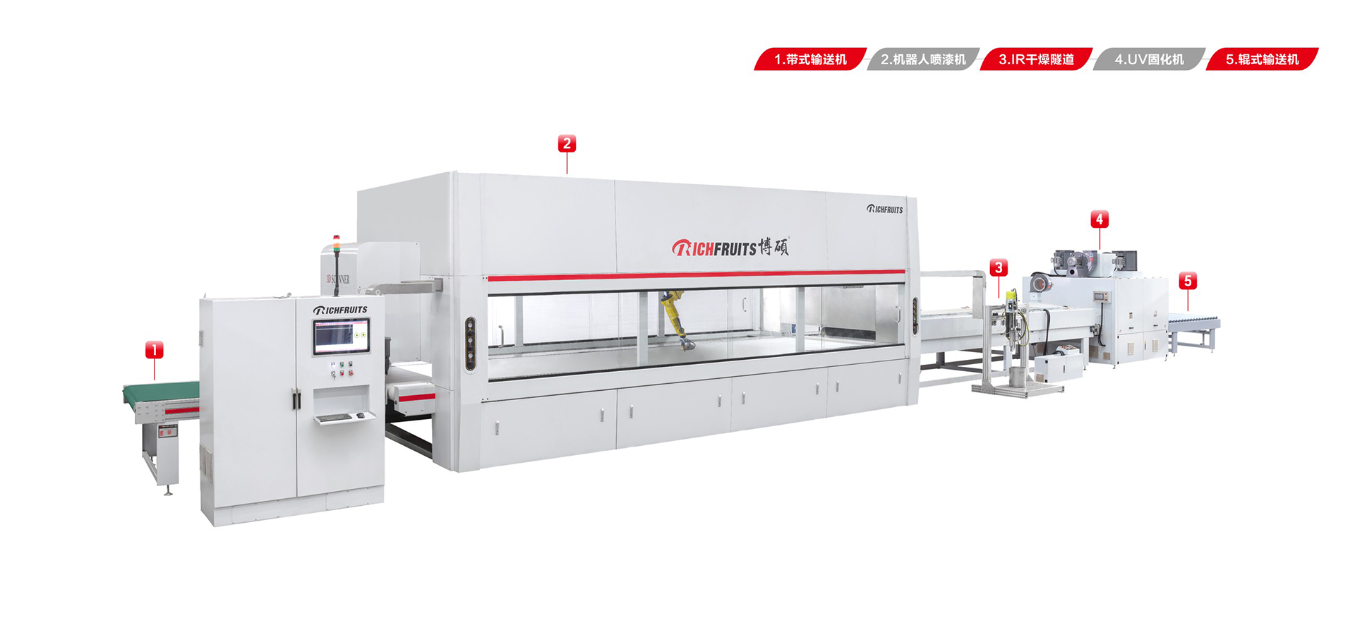 適用于板式家具、實木門、櫥柜門、工藝品、裝飾板、硅酸鈣板、玻鎂板、水泥纖維板的板式加工件的平面和四個側(cè)邊進(jìn)行高質(zhì)量、大批量連續(xù)噴漆。